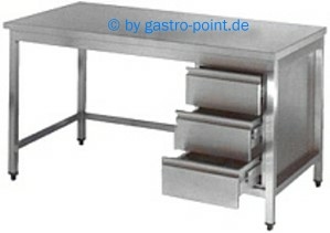 Edelstahl - Arbeitstisch ohne Bodenablage mit 3 Schubladen - solide, fest verschweißte Ausführung aus Edelstahl 18/10 (Chrom-Nickelstahl, Werkstoff 4.301)
